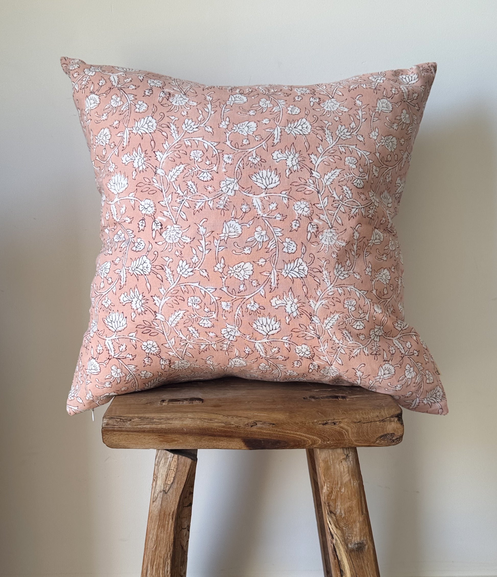 Bring a soft, handcrafted touch to your home with our Eloise Block Print Pillow Cover. Handcrafted in India using traditional hand block printing techniques, this cotton canvas pillow cover features a muted pink floral pattern printed on both sides. A hidden zipper makes it easy to insert or remove your pillow insert. Perfect for layering on a sofa, chair, or bed, this handmade pink floral pillow cover adds warmth, texture, and timeless style to any space.