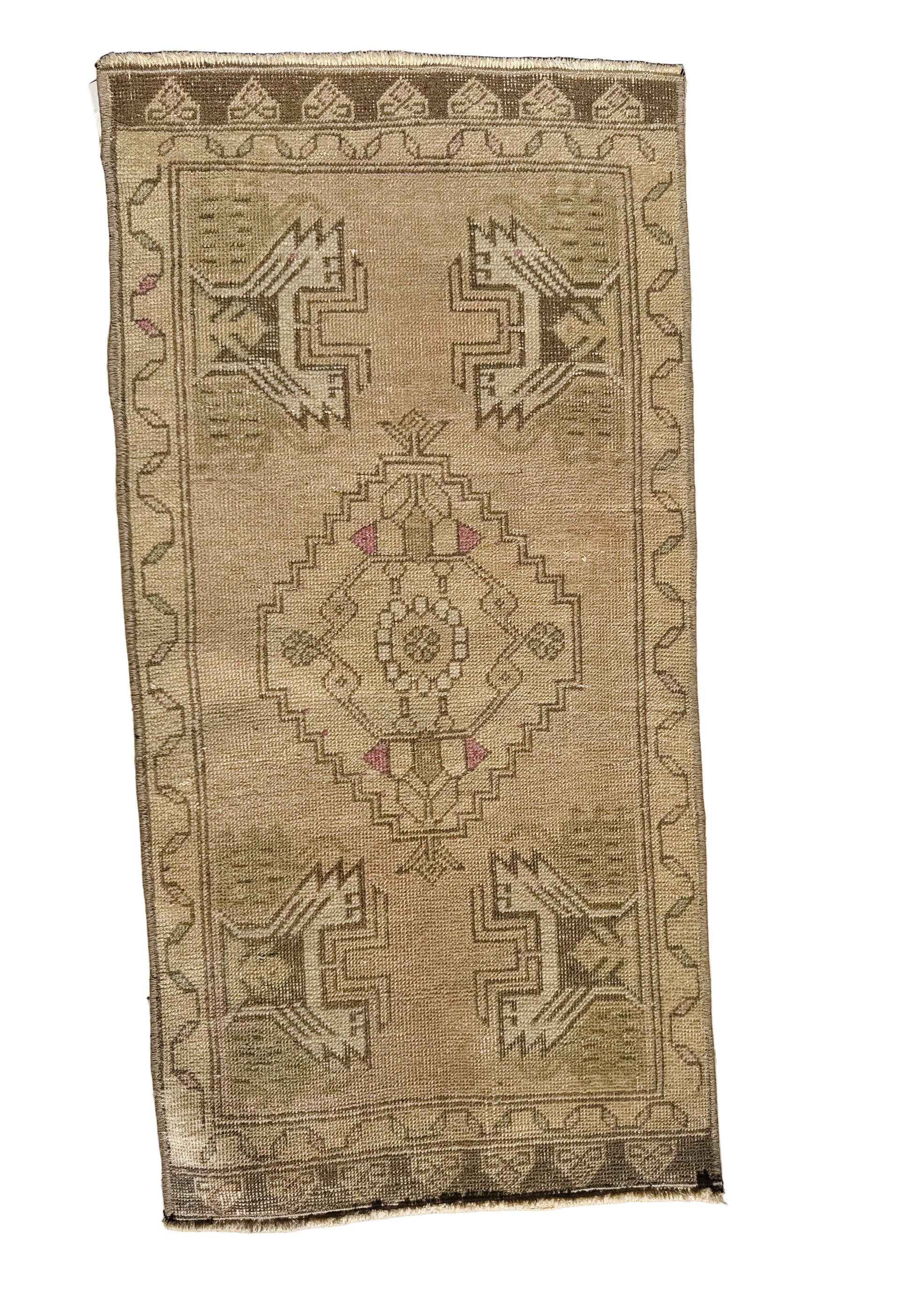 Introducing our Mini Vintage Turkish Rug No. 48, a beautiful neutral piece of art that brings a touch of timeless beauty and character to any space. This exquisitely crafted rug combines the charm of traditional Turkish design with a compact size, making it perfect for smaller areas or as an accent piece in larger rooms. Our vintage rugs are hand sourced by our Co-Founders, Claire and Lindsay.