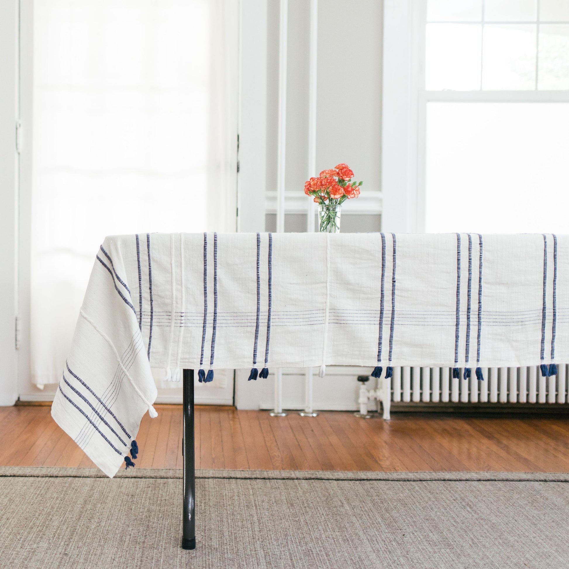 Add a luxurious touch to your tablescape with our Ribbons Cotton Tablecloth! Beautifully versatile for indoor or outdoor use. Exquisitely handwoven by a small group of talented Ethiopian artisans using handspun cotton and dyed with AZO-free color. The tablecloth also could be used as a lightweight throw or wrap. 100% locally sourced eco-friendly cotton. Yes, it's machine washable!